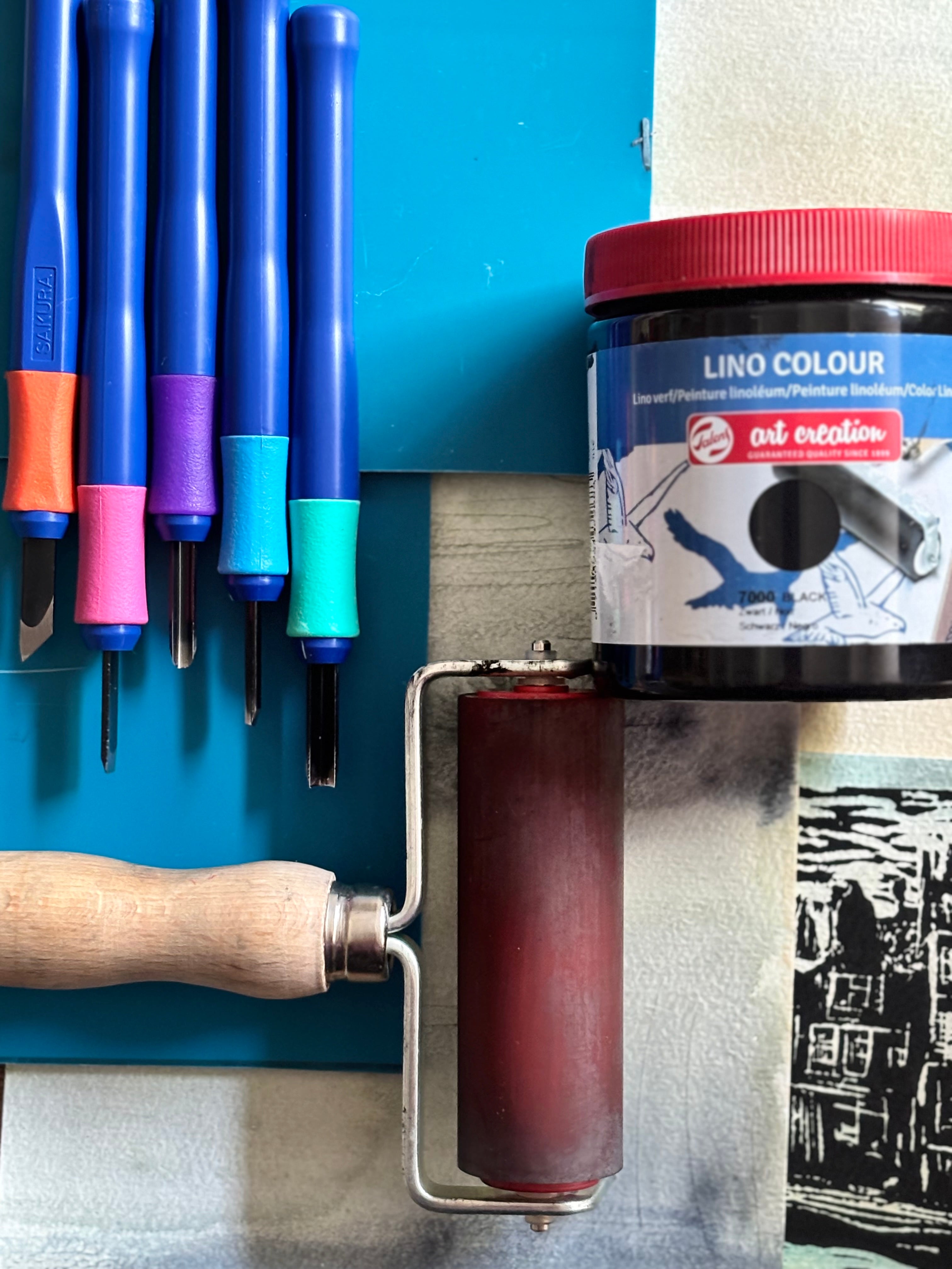 Dit beeld breng je over op lino (9 x 13 cm) en snijd je uit met de linotechniek — een knipoog naar Piecks prachtige houtsnedes.