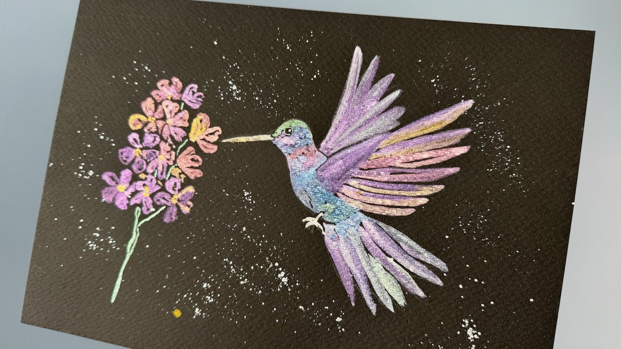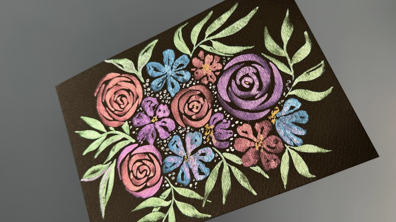 Op zwart papier komen de metallic kleuren echt tot leven: ze glanzen en glitteren op een manier die je met gewone aquarel niet krijgt. Het is het hele jaar door gewoon leuk om mee te werken, maar richting december past dat glitterende effect natuurlijk helemaal bij de sfeer.