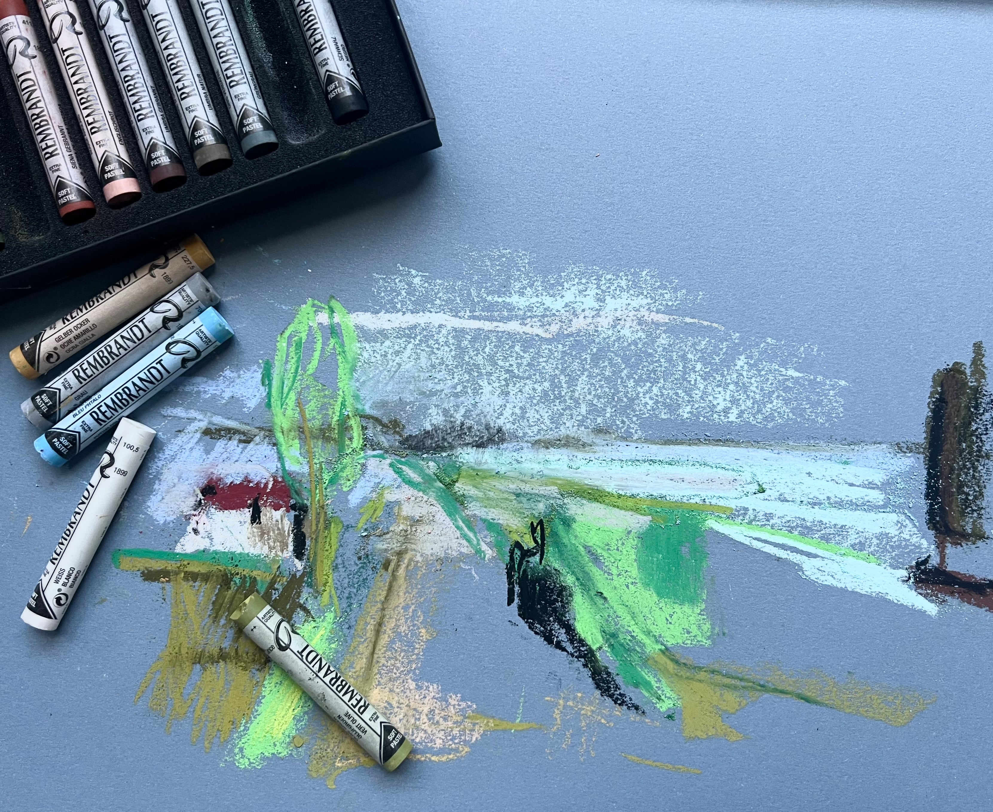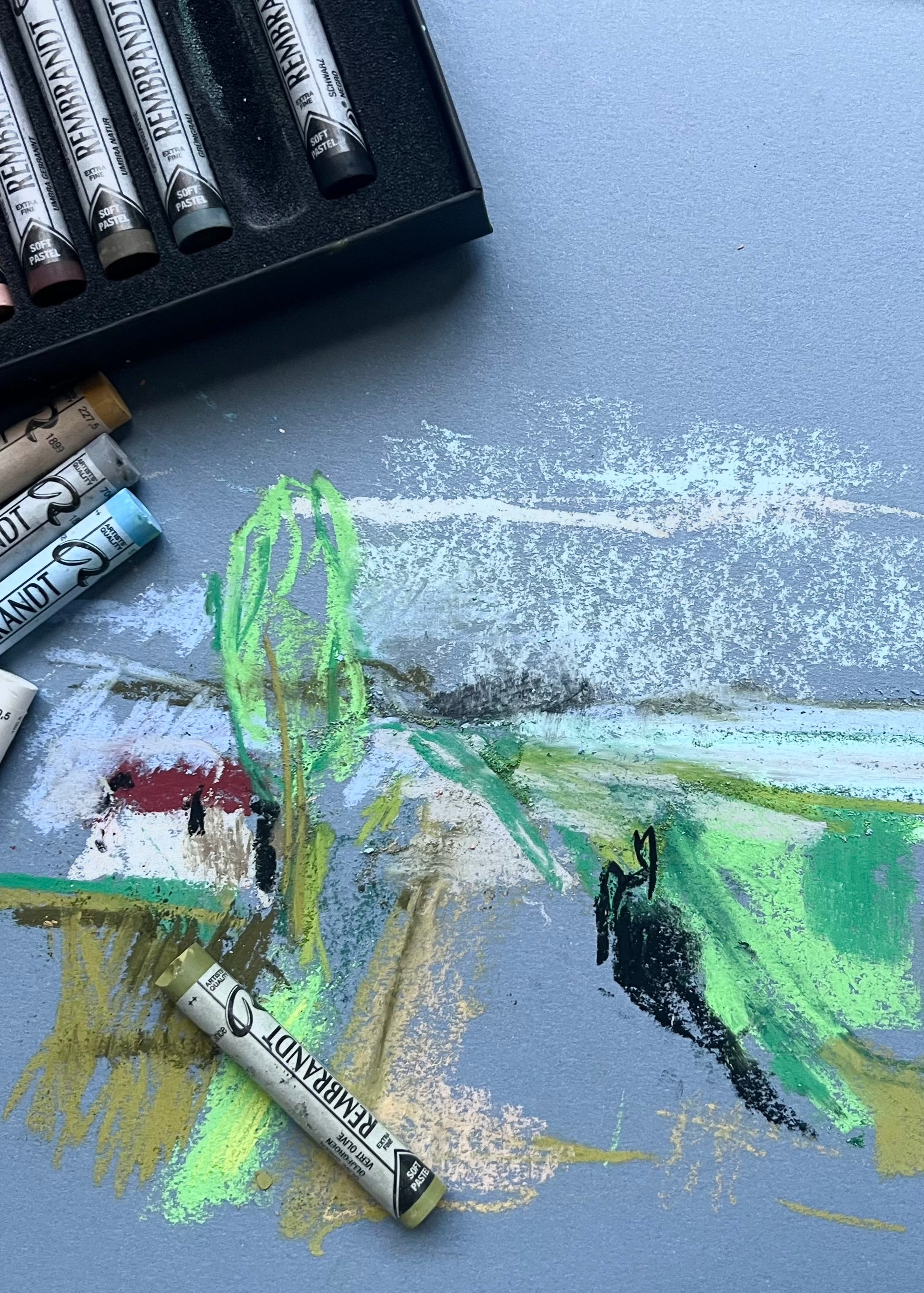 Tijdens de workshop maak je diverse schetsen in houtskool, geïnspireerd op kunstwerken én het uitzicht vanuit ons atelier. Je sluit af met een uitgewerkte tekening in pastel op gekleurd pastelpapier. Een prachtig eindresultaat om mee naar huis te nemen.